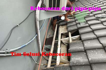 - untuk pipa-pipa AC ynag penempatannya di dak atap atau di talang dak,terkadang untuk pengamanan di kasih dinabolt di dudukan ac-nya,ini potensi air merembes dari celah dinabolt,kalau memang bisa ditaruh saja ini untuk menghindari kebocoran